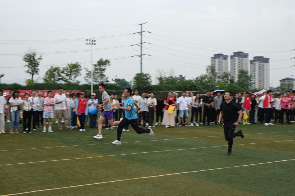 在众多比赛项目中,60米迎面接力无疑是最具看点的项目之一。赛场上,教职工们被分成若干小组,每组的队员们严阵以待。随着一声清脆的哨响,第一棒的队员如离弦之箭般冲了出去,他们全力奔跑,将手中的接力棒精准地传递给对面的队友。每一次交接棒,都是信任的传递;每一次冲刺,都饱含着为团队争光的决心。队员们在赛道上你追我赶,步伐矫健,风驰电掣般的速度引得周围观众不断呐喊助威。现场加油声、欢呼声交织在一起,热闹非凡。