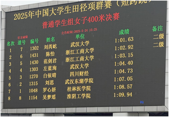2025年5月25日,中国大学生田径项群赛(短跨跳)在贵州遵义奥林匹克体育中心圆满落幕。作为全国高校田径单项最高水平赛事之一,吸引了全国多所“双一流”高校在内的82所院校681名教练员、运动员参赛。学院田径健儿们在与全国顶尖运动员激烈角逐中不畏强敌,奋勇拼搏,斩获佳绩!