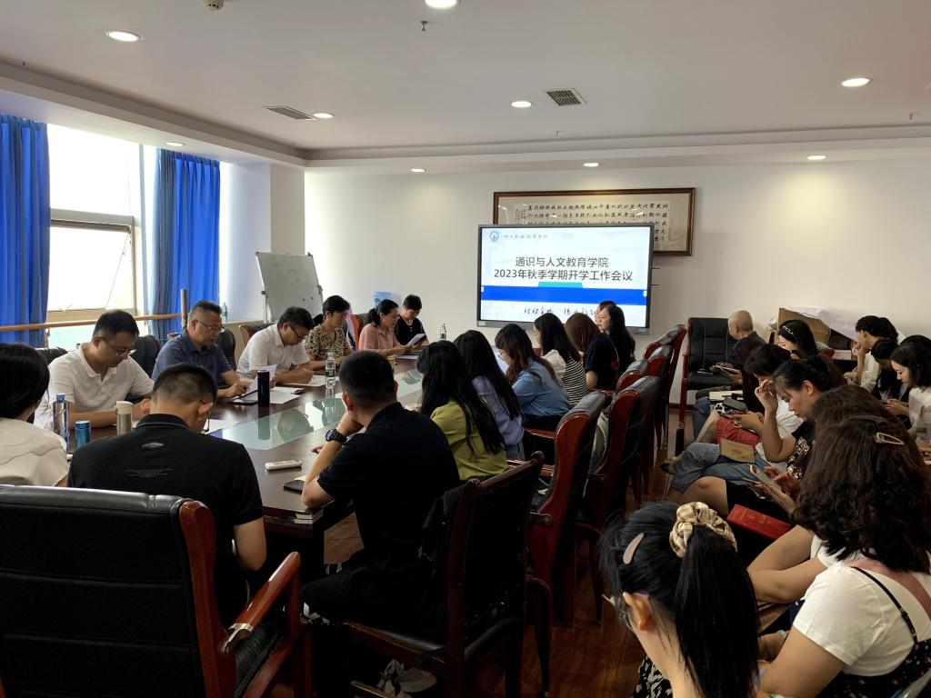 新学期,新气象,新作为。2023年8月30日上午9:30,通识与人文教育学院在明德楼713会议室召开2023年秋季学期开学工作会议,学院符刚院长莅临会议现场并指导工作。会议由通识与人文教育学院副院长李开柱主持,通识与人文教育学院全体教职工参会。