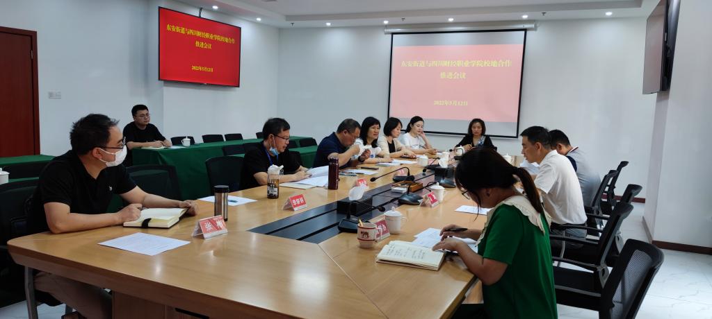 东安街道党工委副书记王志科出席会议,并对罗潇副院长一行表示了热烈欢迎。会上指出,校地合作要充分发挥学校培养人才和服务社会的功能,加强学校教学以及人才培养工作与地方社会发展的紧密联系,更好地为地方建设和社会发展服务;本着“优势互补、共谋发展、互惠互利、合作共赢”的原则,就校地合作的范围、内容、机制等各方面进行了友好的协商。