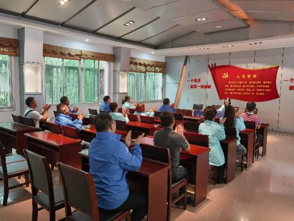 随后支部书记张晋红主持召开了党员大会,全体党员在鲜红的党旗下重温了入党誓词,集中进行了关于习近平新时代中国特色社会