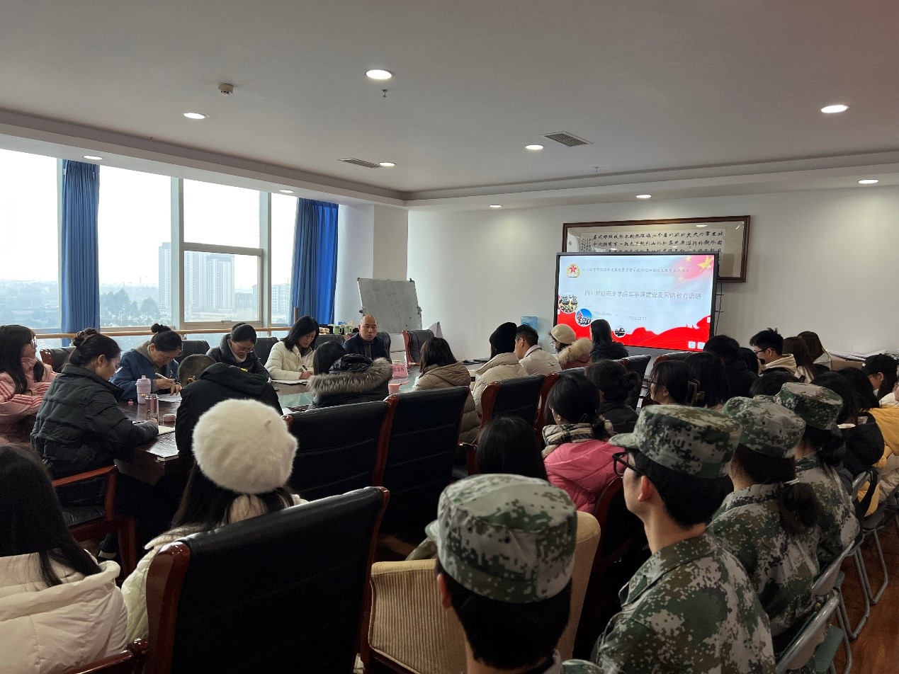 本次调研活动于2023年12月22日在我校明德楼713会议室举行,四川省特聘专家,阿坝师范学院物理与电子电气工程学院陈家勇教授负责调研我校国防教育相关情况。通识与人文教育学院党总支书记、院长张晋红、通识与人文教育学院党总支副书记刘华均出席本次调研会议,由职业素养教研室主任吴峥老师主持,本校军事理论课程组全体老师、25名各专业学生代表参与调研。