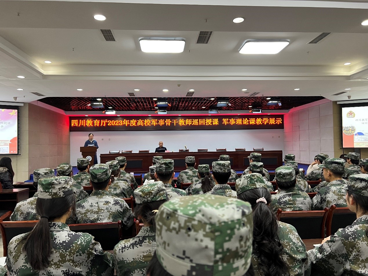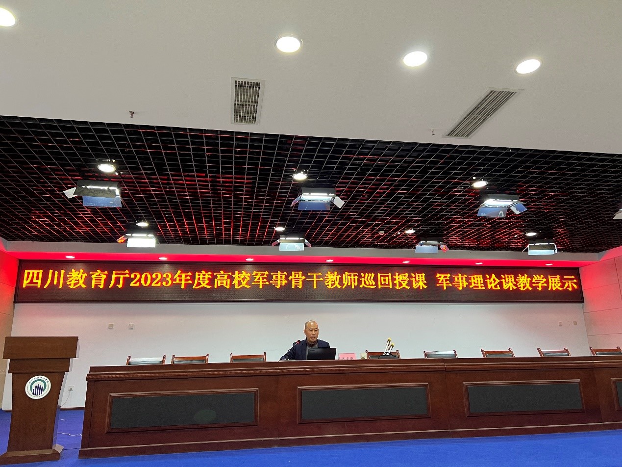 为持续推进军事课教学发展,着力提高军事课教学质量,积极营造国防教育氛围,不断增强学生国防观念和国家安全意识,培塑爱党爱国爱军精神。四川省2023年度普通高校军事理论课巡回授课及教学展示活动于2023年12月22日在我校308会议室举行。