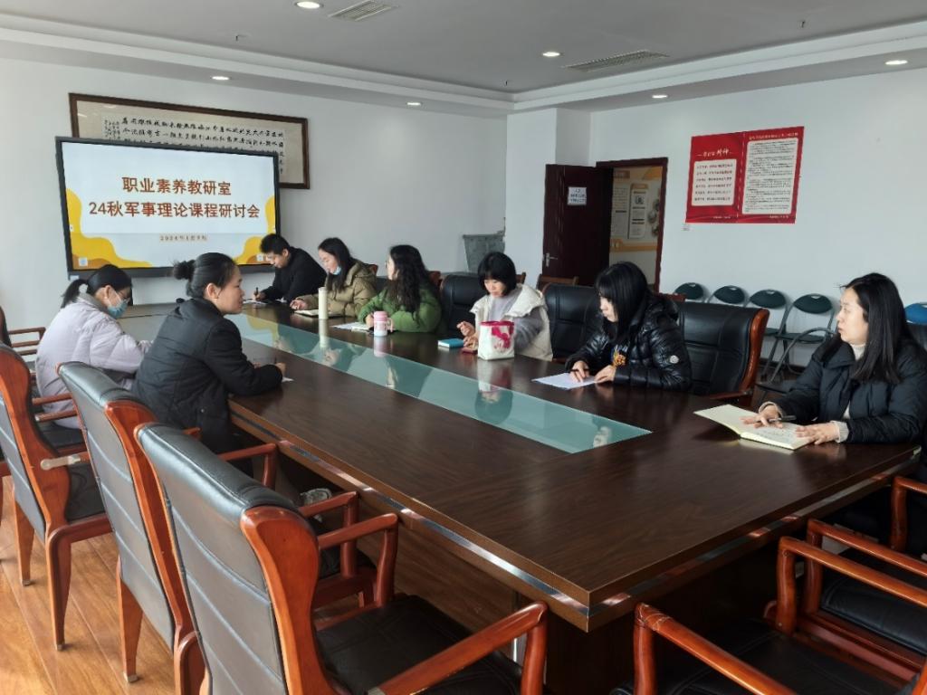 为进一步提升军事理论课教师理论水平、专业素养和业务能力,2024年1月5日职业素养教研室组织军事理论课程组全体专兼职教师举行了教学工作总结研讨会。