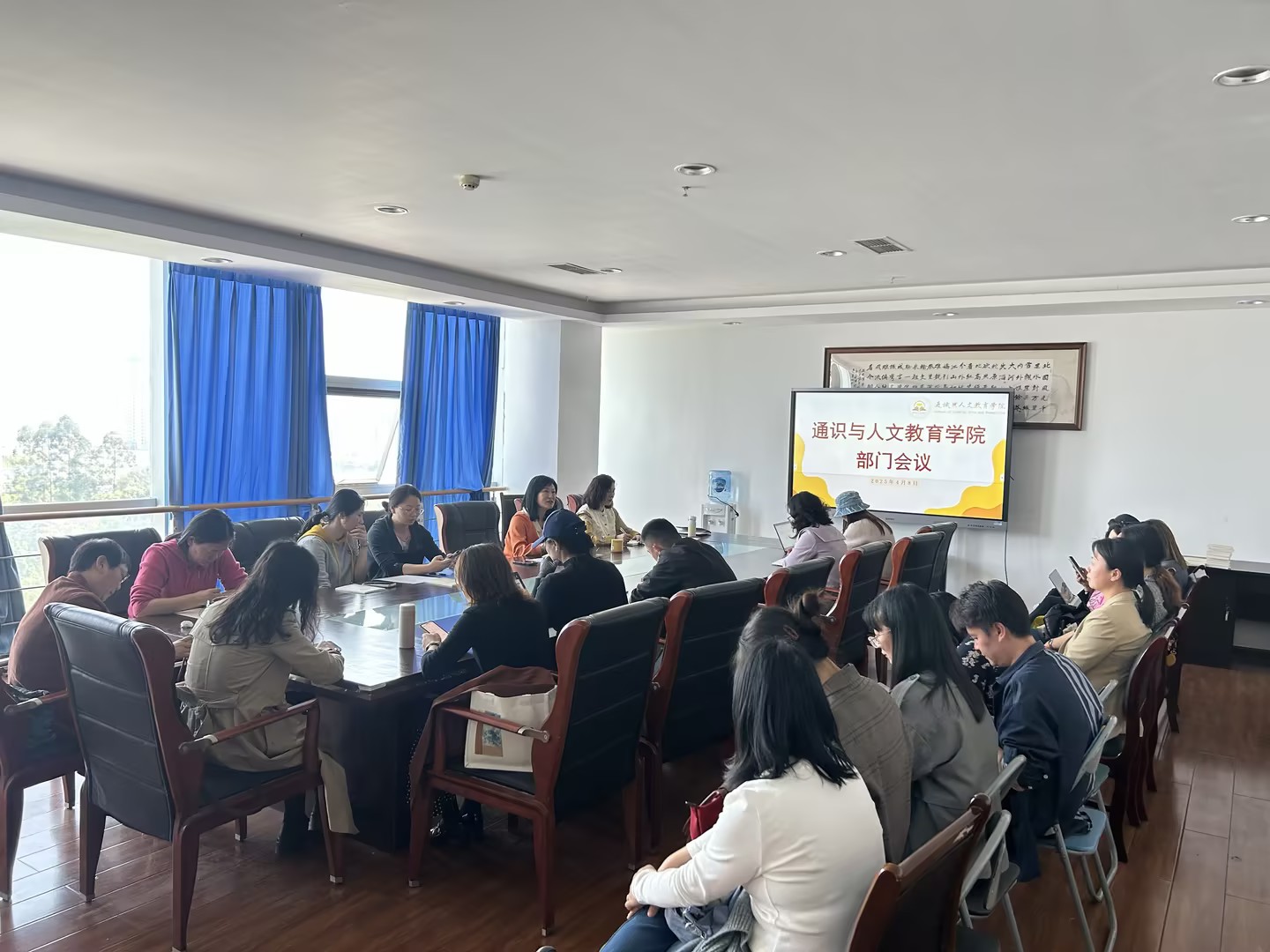 2025年4月8日下午,通识与人文教育学院在明德楼713会议室召开部门学习暨工作布置会。本次会议由通识学院院长张晋红主持,全体教职工参会。