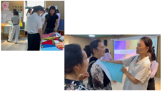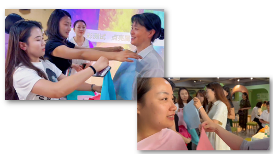 接下来的互动环节中,胡蝶副教授用专业的色彩布进行系统化的美学指导,还在测试中帮助居民朋友们快速准确地找到专属色调,还结合不同体型特征,现场演示了扬长避短的搭配法则,赢得阵阵掌声,居民们积极参与,不断感叹:原来美不是悟出来的,而是学出来的。