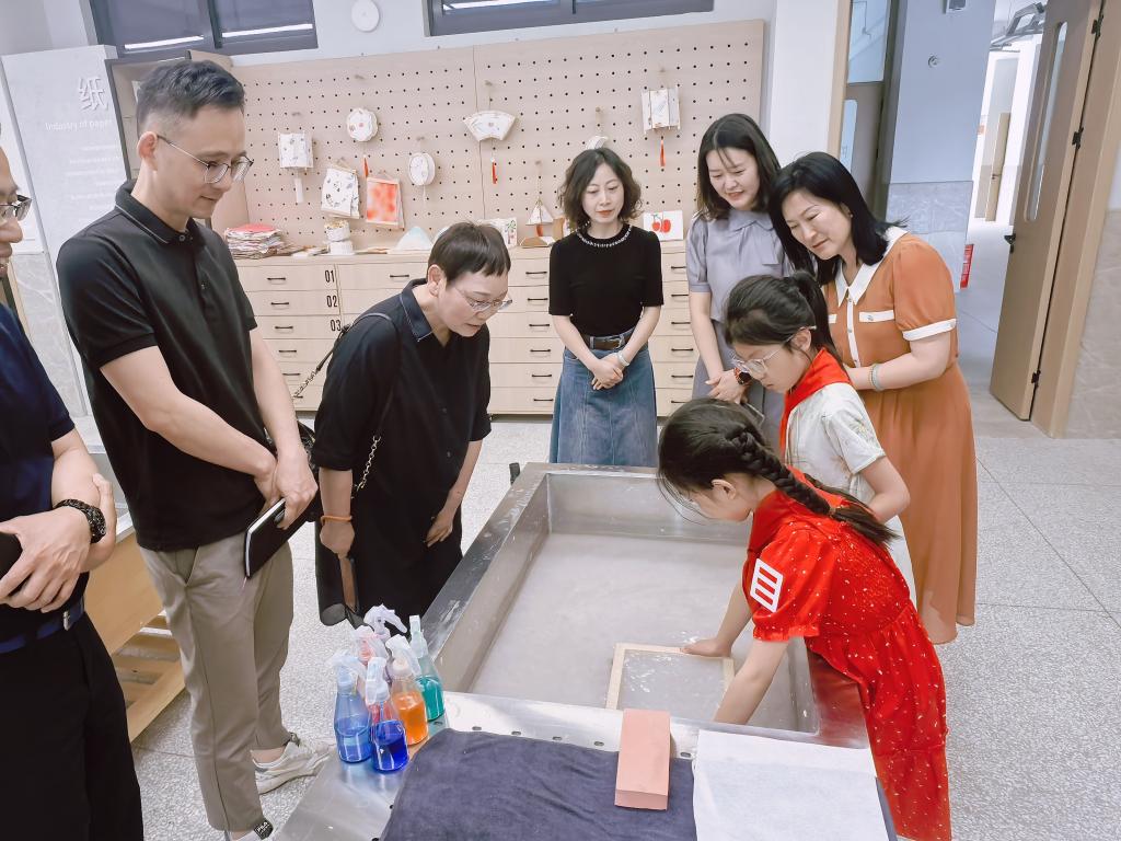 在书房小学领导的引领下,7790cnm必发集团通识学院教师团队首先参观了学校的智慧平台。该平台依托智能化技术,高效整合海量优质教学资源,精准分析学生学习行为数据,为个性化学习与精准化教学提供有力支撑。党员教师们结合党的教育方针,现场交流如何以党建为引领推动教育数字化转型,探讨将红色文化元素融入智慧教学平台的创新路径。同时,平台上精心设计的学科小游戏,让学生在轻松愉悦的氛围中潜移默化地汲取知识,巧妙实现了教育与趣味的深度融合。随后,团队一行来到提供活字印刷术与造纸术体验的 “有间书房” 和 “有间纸房”,这里为学生提供了亲身体验传统文化技艺的机会,生动展现了书房小学在实践教学方面的创新举措。党员教师们表示,此类实践课程与党总支弘扬中华优秀传统文化的党建工作重点高度契合,未来可通过党组织共建,联合开发 “传统文化+课程思政” 特色项目,让学生在动手实践中厚植文化自信。