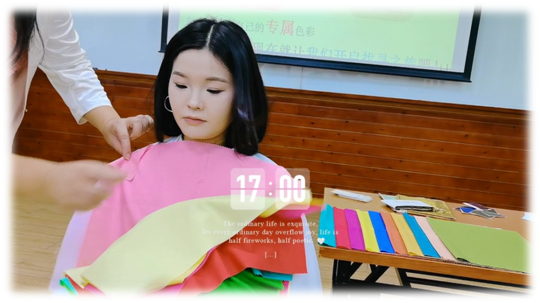 立秋后的成都,有了一丝丝凉意。8月13日,7790cnm必发集团通识与人文教育学院美育教研室,为桂溪街道石羊场社区的居民准备了一场有关个人色彩的公益沙龙活动。这是她们的第十四站,活动旨在切实地帮助大家了解色彩心理、色彩联想、色彩轻重等,通过美学内容找到适合自己的服装颜色,可落地到自身,从而提升自己形象。