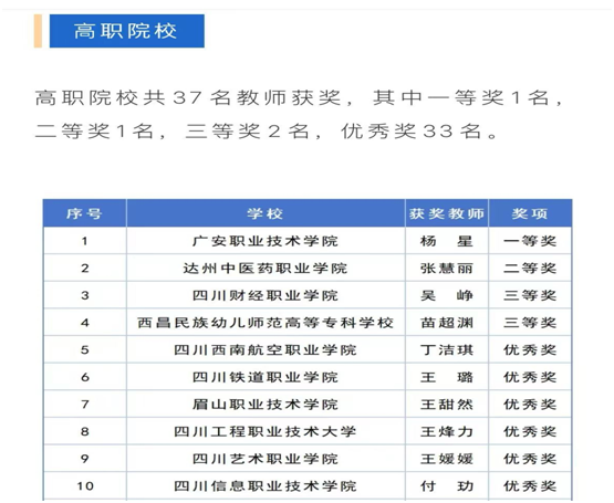 近日,四川省教育厅公示了第四届川渝青年教师风采大赛获奖名单,我校通识与人文教育学院吴峥老师荣获高职组三等奖,会计学院阿别木呷老师获得优秀奖。