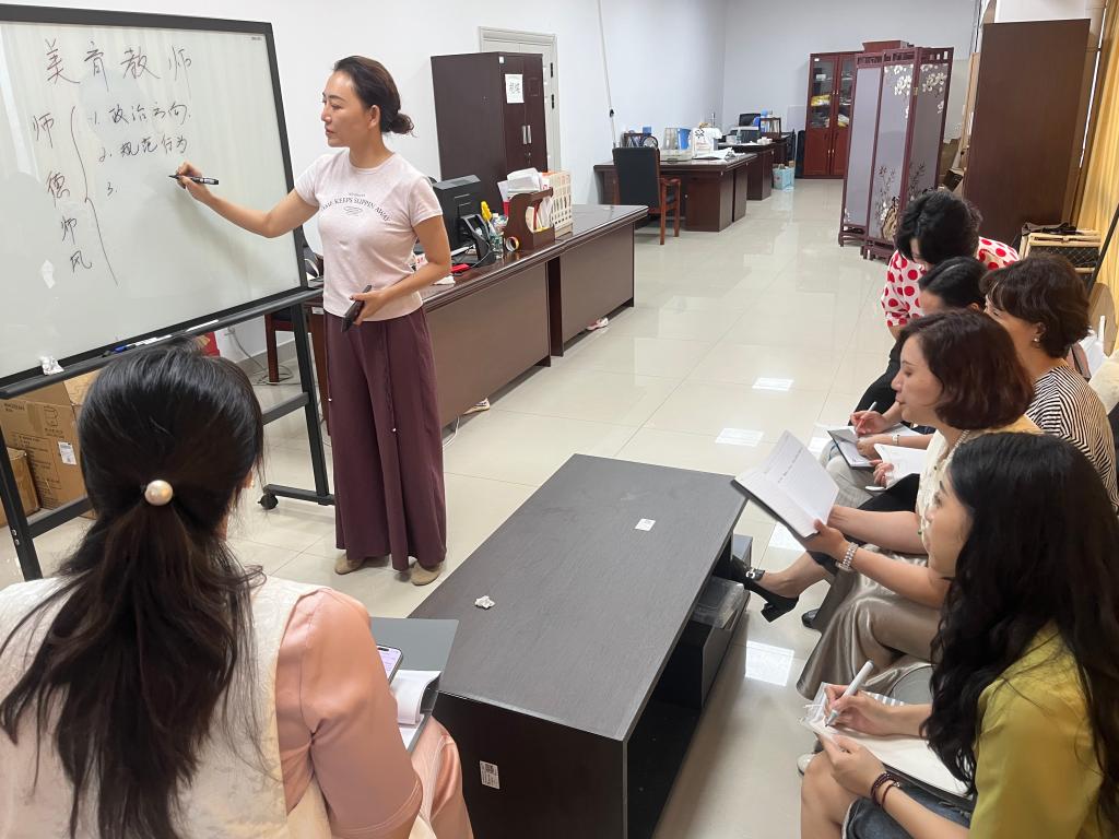 学习会上,教研室主任胡蝶带领全体教师逐条解读文件,领会核心内容,重点围绕师德评价的十大维度即政治方向、爱国守法、传播文化、教书育人、关爱学生、言行雅正、学术规范、公平诚信、廉洁自律、奉献社会展开深入研讨。教师们纷纷结合自身教学实践,就如何将师德要求融入美育课程设计、课堂教学管理及学生指导等环节进行了热烈交流。全体教师表示,将以此次学习为契机,把师德规范内化为职业信仰,外化为教学实践,努力成为新时代"四有"好老师,为培养担当民族复兴大任的时代新人贡献美育力量。