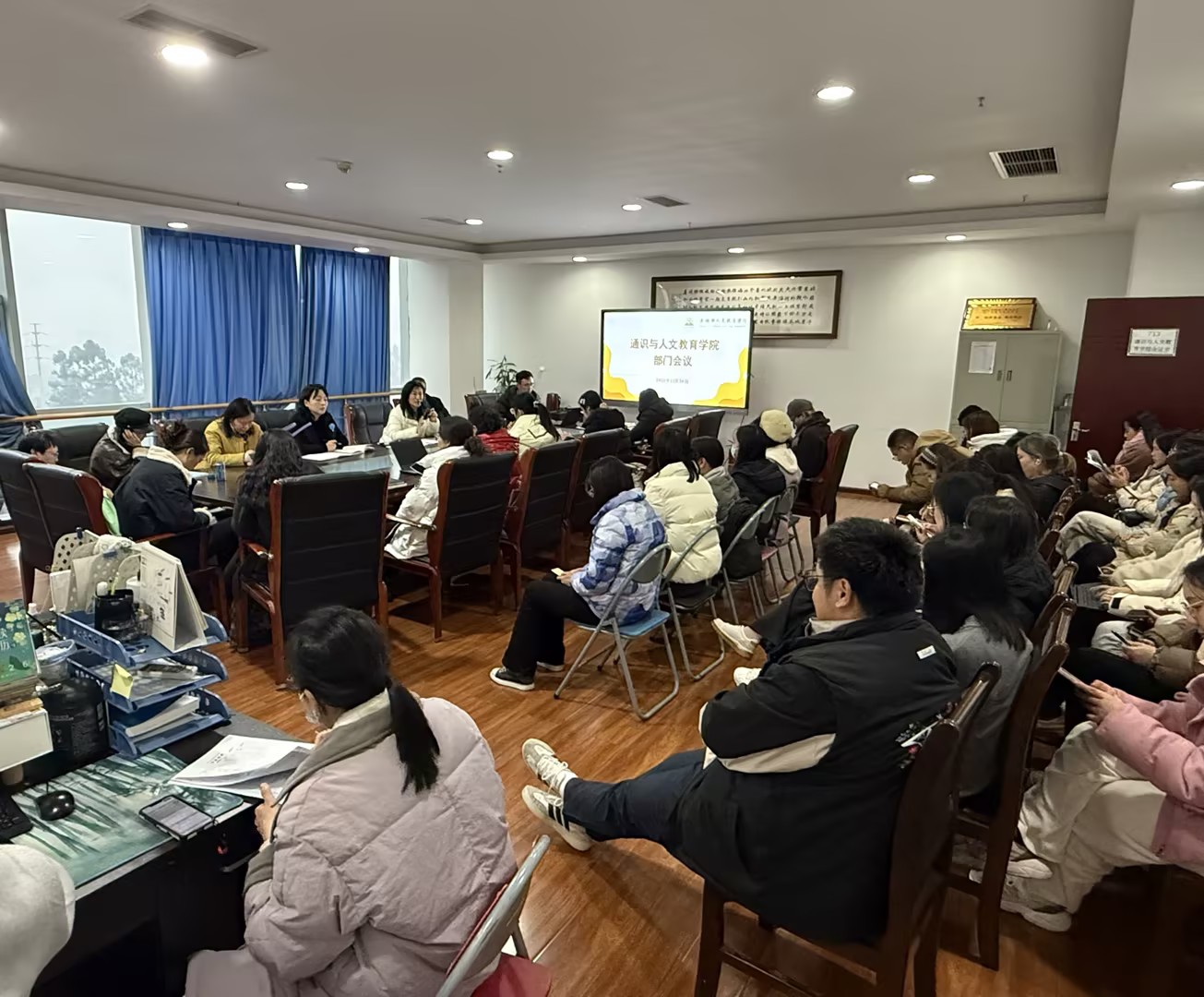 12月30日下午,通识与人文教育学院在明德楼713会议室召开部门工作会议,重点总结前期成效、部署期末任务、明晰近期规划,并对近期重要文件深入学习。会议由通识学院院长张晋红主持,通识学院全体教师参会。