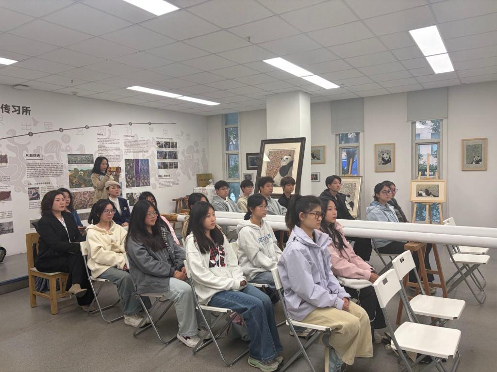 活动现场,传习所负责人与美育教研室党支部书记胡蝶共同致辞。胡蝶强调,非遗是中华文明的鲜活载体,美育是培根铸魂的重要途径。此次活动通过“非遗进校园”与“美育进文化空间”联动,让青年学子在对话大师、触摸传统中坚定文化自信,助力非遗焕发新生。