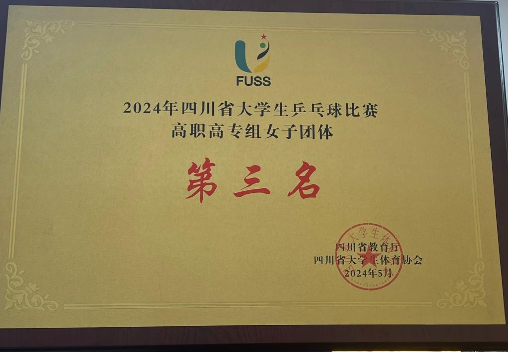 2024年四川省大学生乒乓球比赛高职高专组女子团体第三名
