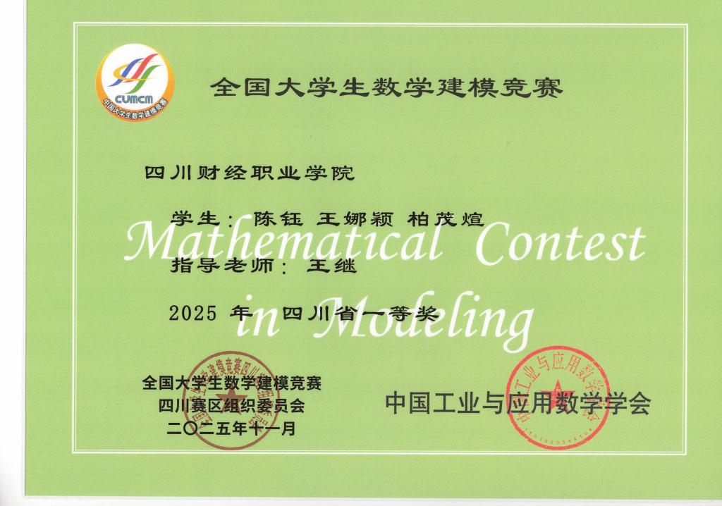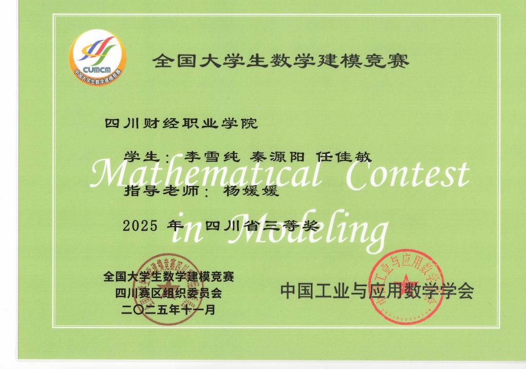 2025年全国大学生数学建模竞赛四川省二等奖指导 杨媛媛