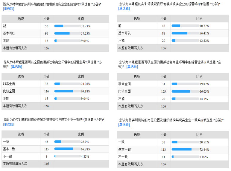 虚拟仿真实训教学作为我院实训教学体系的重要环节,有效的补充了各专业的单项课程实训和单专业综合实训的不足,帮助学生尽快掌握职业人的基本技能和素养,使学生在就业前做好理论知识、实操技能、心理适应等各方面的准备工作,与学生的企业实习形成强势互补。学生在实训结束后,也对此效果给予了高度的肯定。(以2020年秋季学期第三期和第四期学生调查问卷结果为例)