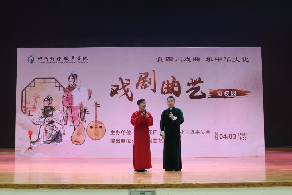 为传承中华戏曲文化,促进大学生对戏曲文化的了解,提高当代大学生的文化与艺术素养,4月3日晚19时,我院团委特邀四川省曲艺研究院为全院师生带来了一场主题为“赏四川戏曲 承中华文化”的戏剧曲艺表演视听盛宴。