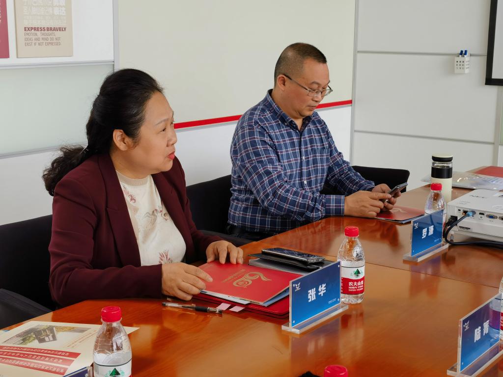 张华书记代表学院对宗申集团表示感谢,并简要介绍了学院的办学历史、办学特色、办学成效以及专业布局等。她表示,希望借助本次访企拓岗活动,将校企合作做精做深,双方共同探索人才培养,企业支撑学院人才培养的同时,学院人才培养也切实解决企业人才需求问题,双方合作共赢。