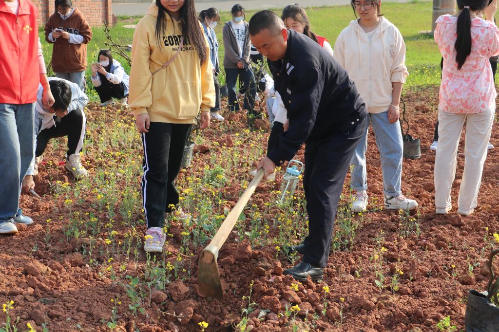 活动开始前,同学们有序领取工具和树苗。带队老师校团委副书记季宁宁老师耐心地为同学们讲解劳动工具的使用方法与技巧,劳动过程中需要注意的安全事项,并亲身指导示范。同学们个个都听得认真,摩拳擦掌,跃跃欲试。
