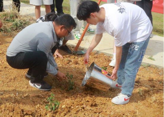 启动仪式后,师生代表共同开展了劳动实践,在各自的劳动基地上种下了辣椒苗。