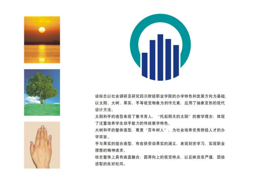 大树和手的整体造型,寓意“百年树人”,为社会培养优秀财经人才的办学宗旨。
