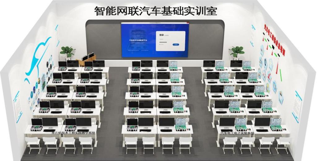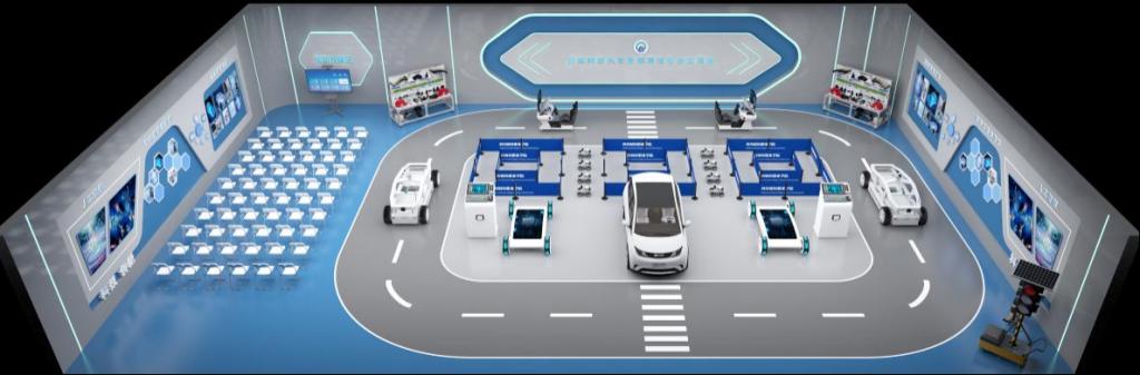 智能网联汽车基础实训室、智能网联汽车装调测试综合实训室、智能网联汽车“车路云一体化”综合实践中心等校内实训室,搭建了“部件—系统—整车网络-车路云一体化”的递进式实训体系。