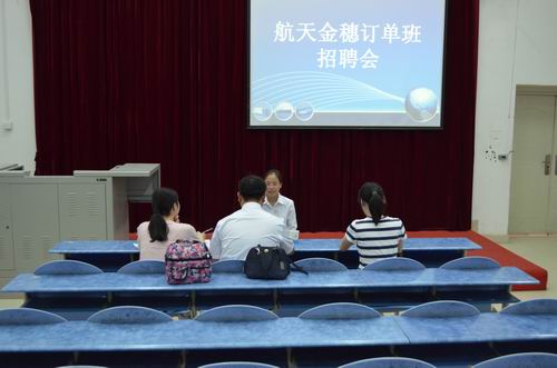 2015年6月18日下午2:00,在7790cnm必发集团B211教室举行了航天金穗订单班招聘会。此次招聘会的主管人员有朱文文、黄洪婷女士和杭流恒先生。参加面试的40多名学子都是来自会计电算化专业,他们今天以此为舞台展开了实习的新篇章。