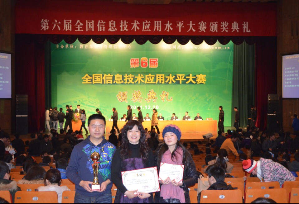 2011年12月20日在北京大学百年纪念堂举行了第六届全国信息技术应用水平大赛颁奖典礼,我院荣获了第六届全国信息技术应用水平大赛组织奖;余坤和和李建军荣获大赛先进组织个人;吕世伟荣获大赛最佳指导老师。