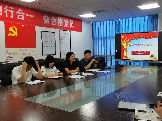 会议首先由翟兴旺同志汇报 预备党员转正公示情况。接着,5名预备党员分别汇报了在预备期内思想、学习和工作表现情况,向组织提出转正申请。其次全体与会党员对其实习工作表现及是否同意按期转正进行讨论并发表意见,随后全体党员对预备党员能否按期转正进行举手表决,一致同意5位预备党员按期转正。