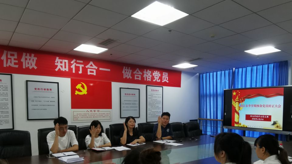 为深入学习贯彻习近平新时代中国特色社会主义思想,提升党员培育质量,发挥党员的模范带头作用。信息学院学生党支部于2022年6月21日上午9:30,在明德楼414会议室召开2022年春季学期学生党员转正大会,本次会议由学生党支部书记翟兴旺同志主持召开。