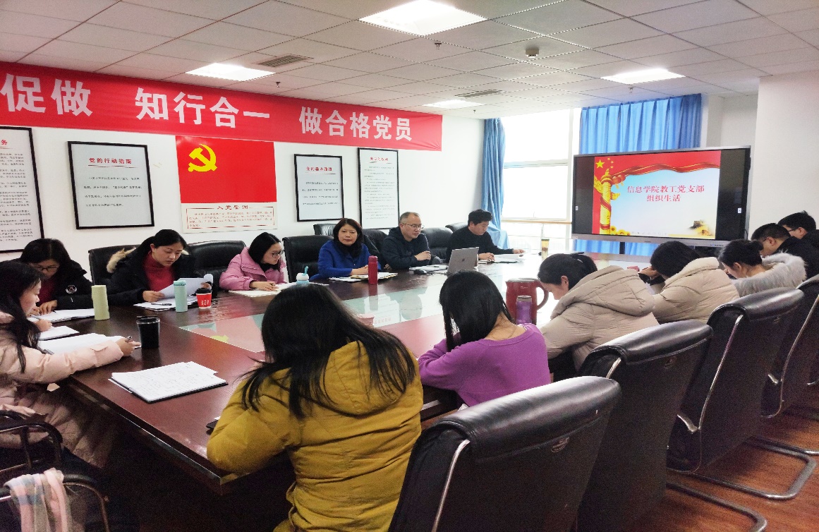 信息学院党总支于2021年1月21日下午2:30,在明德楼414会议室召开教工党支部和学生党支部组织生活会。教工党支部和学生党支部全体党员参加了会议。会议由总支书记傅丽同志主持。