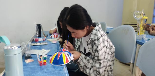 本次活动由宣传部、学习部牵头发起,首先为同学们普及了“中华国粹”脸谱的基础知识,在场同学积极发言提问,负责人耐心详细解答。其次,在掌握了脸谱的发展背景及意义基础上,向学生发放脸部模具及颜料,并提出相关注意事宜,整个绘画过程中小组同学们互相合作,每位同学都能专心致志的投入脸谱绘画,各色脸谱很快出现在大家手中。绘画结束后,同学们纷纷表示对于非物质文化遗产的了解从活动前的疑惑茫然到活动后的兴致勃勃,对于脸谱的了解从绘画前的无从下笔到绘画后的行云流水。