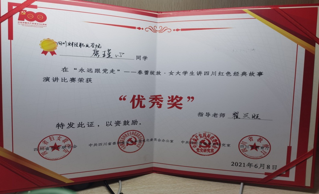 2021年6月8日,由四川省妇女联合会、中共四川省委网信办、中共四川省委党史研究室、四川省教育厅在全省高校组织开展的庆祝中国共产党成立100周年“永远跟党走”——春蕾绽放·女大学生讲四川红色经典故事演讲比赛决赛在四川师范大学举行。参加决赛的高校师生代表、媒体代表共200余人参加活动,直播吸引了65万余人次观看。