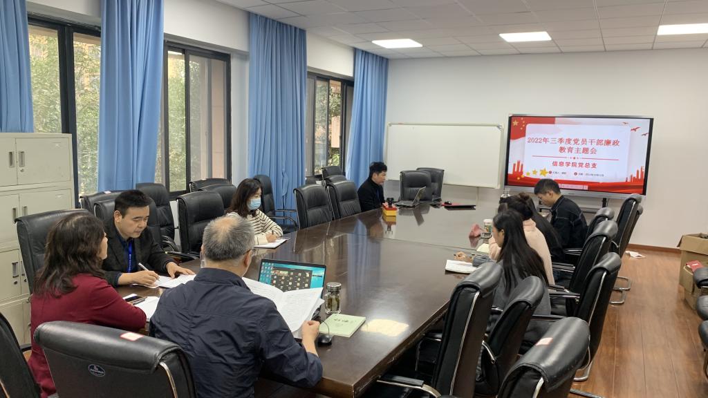 根据驻财政厅纪检监察组、财政厅机关纪委要求,为贯彻落实全面从严治党和党风廉政建设要求,持续加强廉政教育,2022年10月11日下午15:00,信息学院党总支通过线上线下相结合的方式召开了2022年第三季度党员干部廉政教育主题会,党总支书记傅丽主持本次会议,全体党员老师与会。