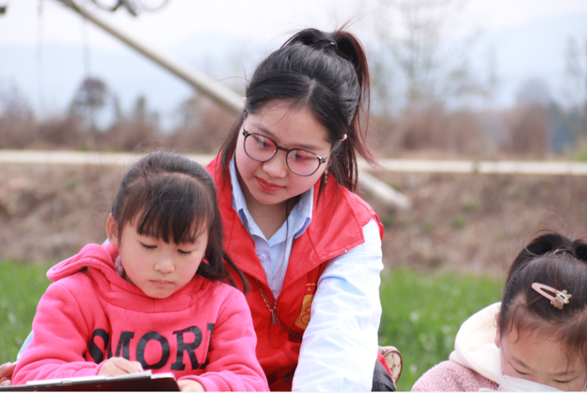 在走访过程中,恰巧碰到村民举行“春天的麦田”儿童绘画活动,学生干部积极参与其中,以“大手拉小手”带领小朋友们一起绘画稻田、房屋,小朋友在画板上表达了对顶佛寺村发自内心的爱,同学们也通过孩子绘画看到了乡村振兴的美好蓝图。