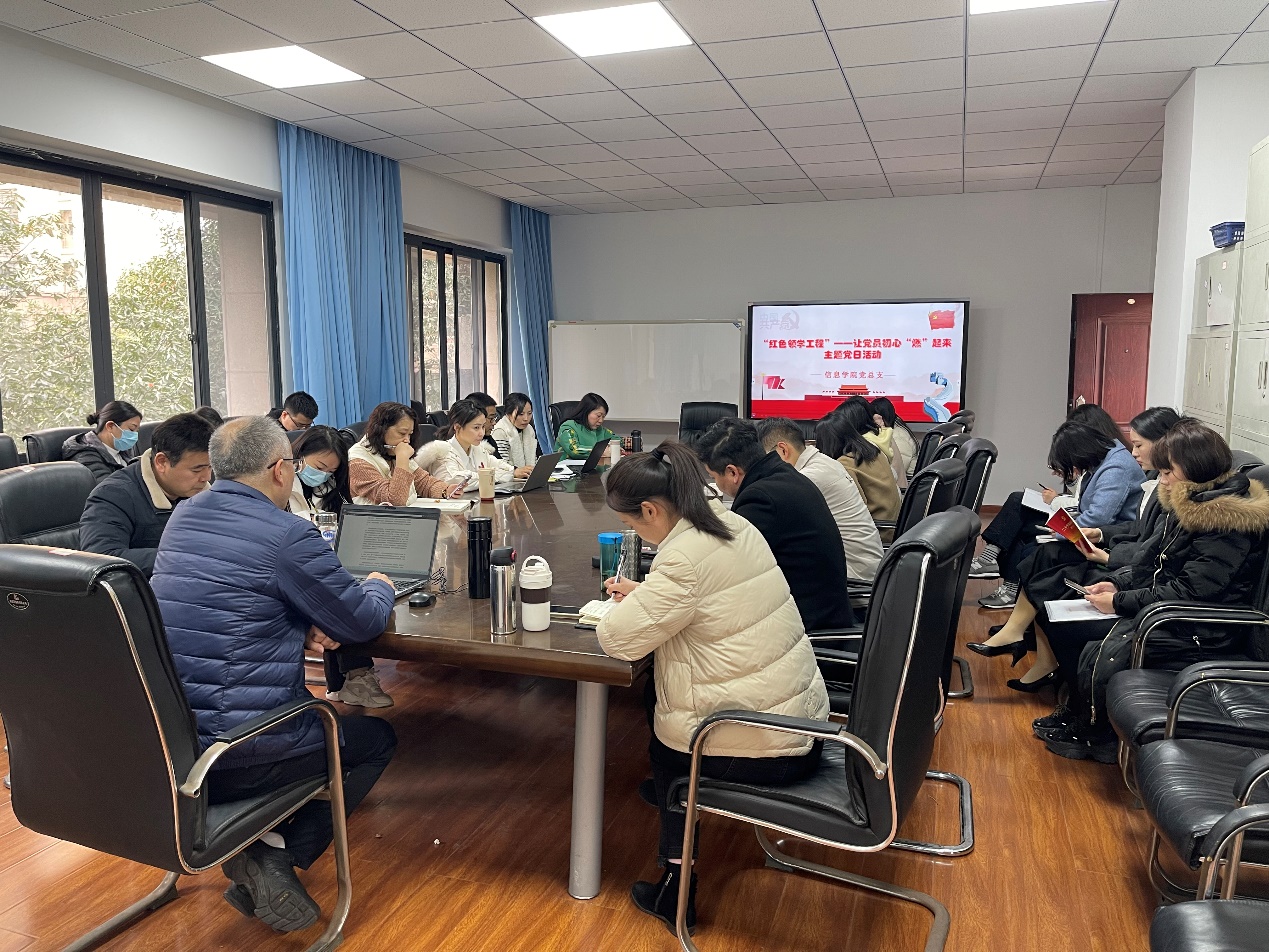 2023年2月28日,信息学院在A附203会议室举办了“红色领学工程”系列主题党日活动之让党员初心“燃”起来,全体党员老师参与了此次活动,学习活动由信息学院党总支书记、院长李建军主持并领学。
