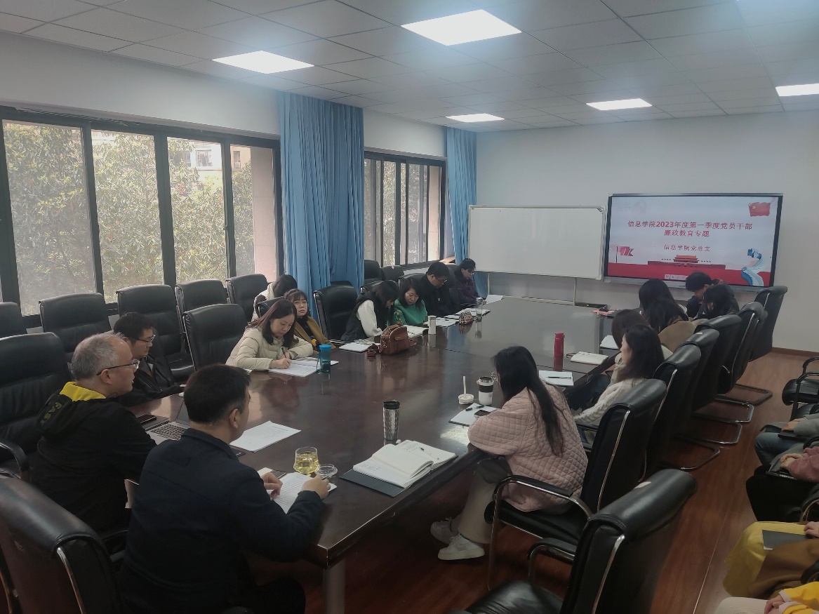 根据驻财政厅纪检监察组、财政厅机关纪委要求,为贯彻落实全面从严治党和党风廉政建设要求,持续加强廉政教育,2023年3月28日信息学院于A附203会议室开展了2023年度第一季度党员干部廉政教育专题学习会,信息学院全体教师参与了学习,会议由信息学院党总支书记、院长李建军主持。