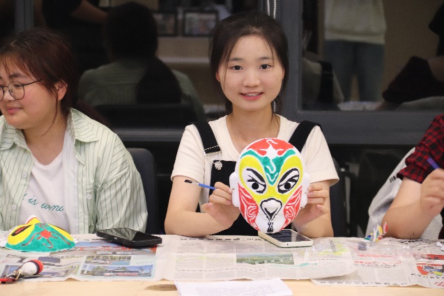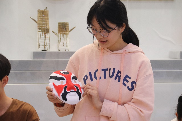 随后,翟老师强调:“历史文化遗产承载着中华民族的基因和血脉,当代青年的我们要尊重历史、传承文化,全面保护好历史文化遗产”。通过展示不同颜色和线条的京剧脸谱,带领同学们简单分辨脸谱,引导同学们思考脸谱颜色与人物性格的关系,激发创作兴趣。