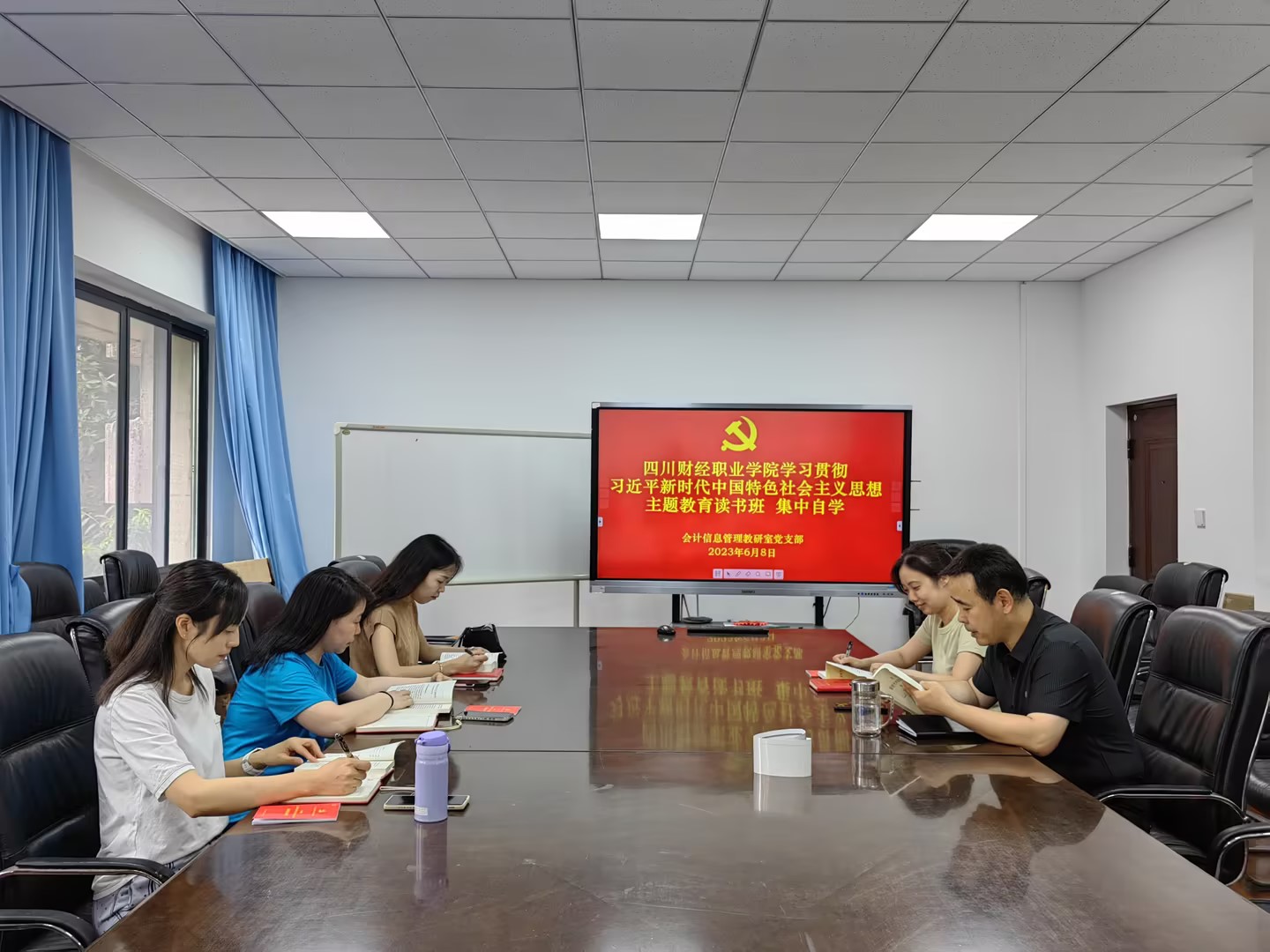 为学习贯彻习近平新时代中国特色社会主义思想,按照学院主题教育统一安排部署,2023年6月8日,信息学院会计信息管理专业教研室党支部认真开展主题教育党课学习,会议由支部书记常竞主持。