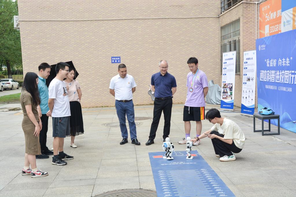 为坚持走中国特色自主创新道路,大力建设创新型国家,提高学生的科技素质和创新意识,信息学院党支部联合天府移动龙泉驿分公司党支部于2023年6月20日下午1点在学生公寓前广场开展“党建引领促发展,凝心聚力谱新篇”5G科普进校园主题活动。信息学院党总支书记、院长李建军,副院长许军,实训教研室主任张娟娟,人工智能教研室主任余海,基础教研室主任王曦,团总支部书记王艺霏和龙泉驿移动分公司总经理叶永龙,相关工作人员出席本次活动。