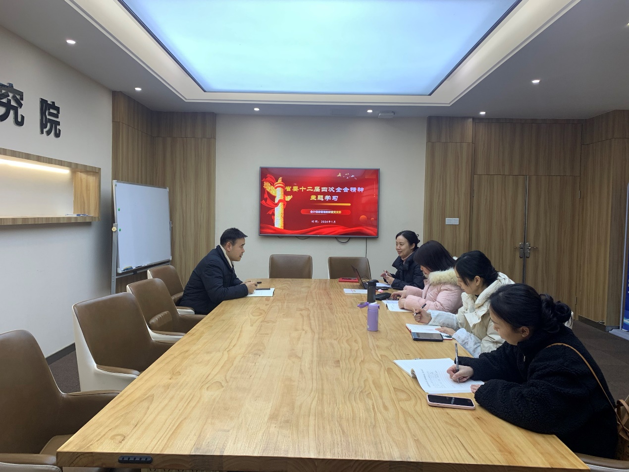 为扎实做好省委十二届四次全会精神学习宣传贯彻工作,引导支部党员教师切实把思想统一到全会精神上来,按照《关于学习宣传贯彻省委十二届四次全会精神的通知》 (川委厅〔2023〕 45 号) 、《关于做好学习贯彻省委十二届四次全会精神宣讲工作的通知》 (川宣通〔2023〕 66 号) 、《中共四川省直属机关工作委员 会关于认真学习宣传贯彻省委十二届四次全会精神的通知》 (川直工委〔2023〕 72 号)和《中共四川省财政厅直属机关工作委员会关于认真学习宣传贯彻省委十二届四次全会精神的通知》 要求,2024年1月8日,会计信息管理教研室党支部全体党员教师于A110会议室集体学习省委十二届四次全会精神,由党支部书记常竞领学。