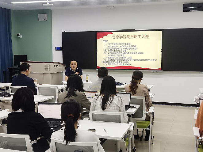 信息学院党总支于2024年4月2日在A106教室召开2024年第一季度支部大会,传达学习习近平总书记有关重要讲话重要指示精神,会议由党总支书记杨晓荣同志主持并讲话。