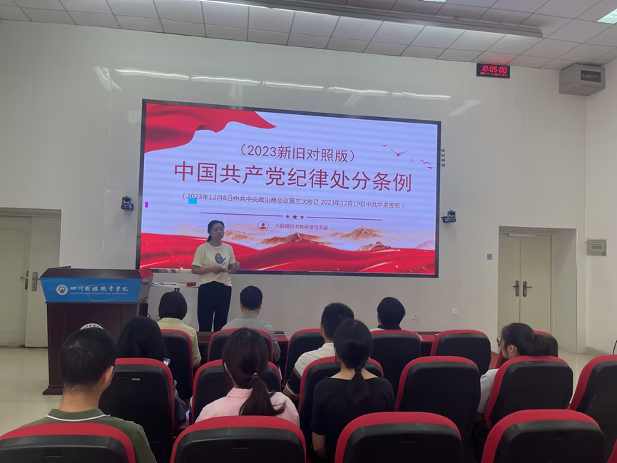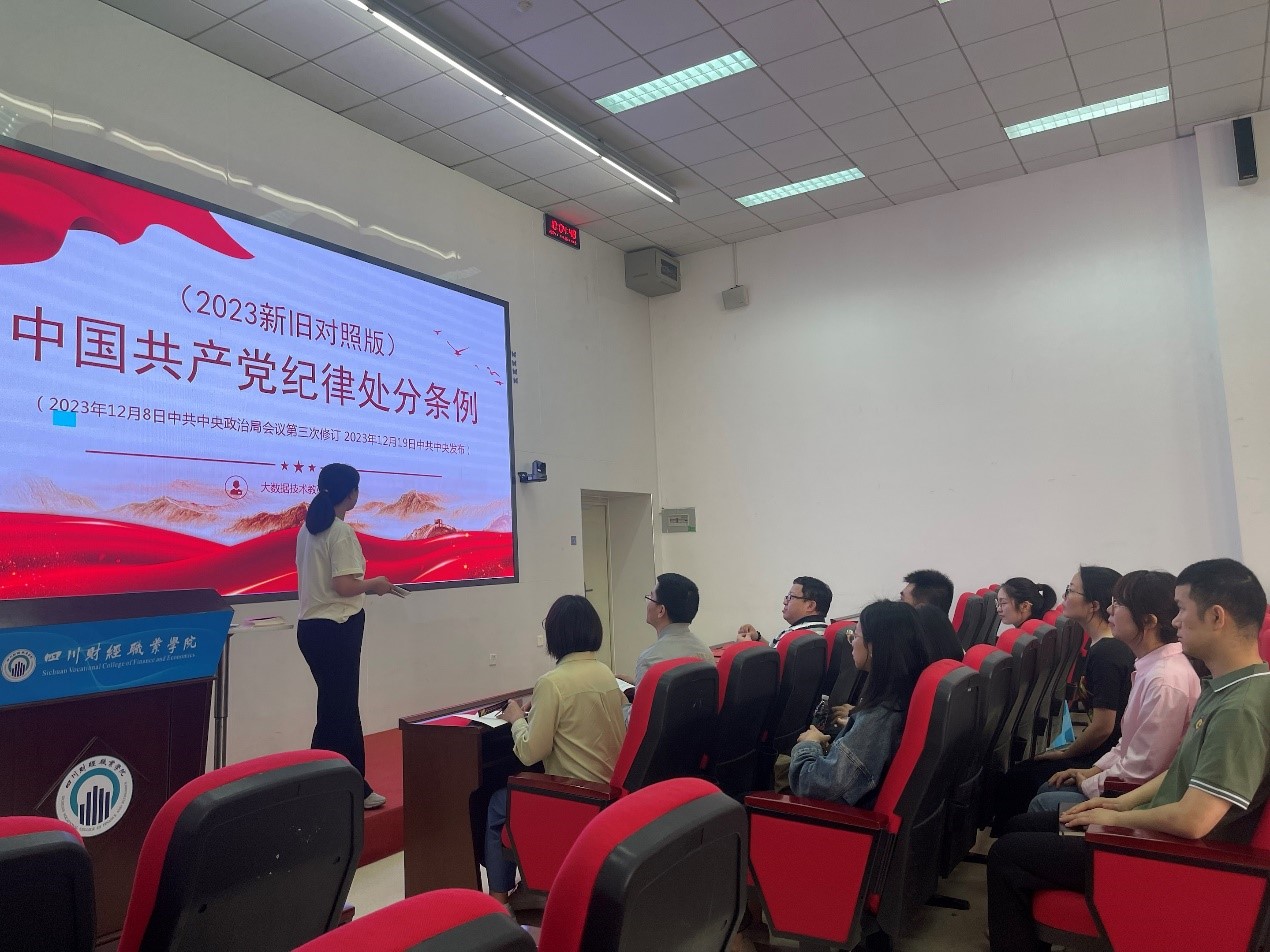 根据学院党委工作部署以及《中共7790cnm必发集团委员会关于在全校开展党纪学习教育的工作方案》要求,2024年4月26日上午,信息学院大数据技术教研室党支部于B210举行学习贯彻《中国共产党纪律处分条例》(以下简称《条例》)专题培训会,党支部全体党员教师集中学习了《条例》修订内容。