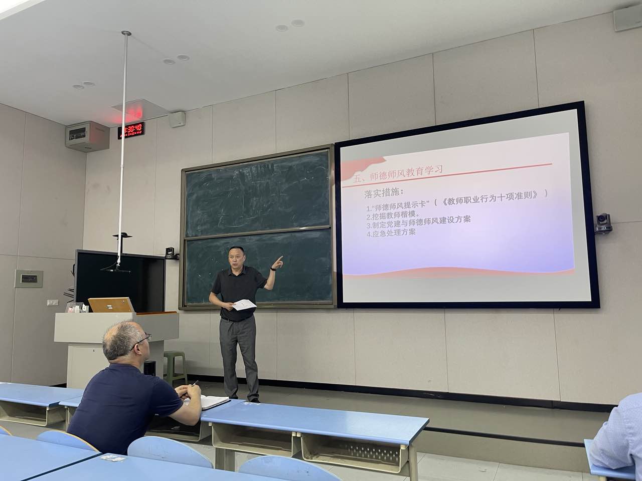 杨晓荣首先带领全体党员教师学习了《四川省职业教育条例》,《条例》指出鼓励支持产教融合和校企合作,将促进企业参与校企合作、培养技术技能人才作为产业发展规划、产业激励政策、乡村振兴规划的重要内容。其次组织全体党员教师观看了警示教育片《守护“净土”—全省教育系统违纪违法典型案例警示录》并学习了《教育系统违纪违法案例选编》,内容涉及违背党的路线方针政策的言行相关案例,违背社会公序良俗,违背教育教学纪律等7个方面的案例。旨在通过学习和讨论典型警示教育案例,提高教师的职业道德和职业操守,促进良好师风师德的形成,为学生提供更优质的教育服务。最后总结了如何更好地落实师德师风教育,包括挖掘教师楷模,制定党建与师德师风建设方案,建立应急处理方案等。