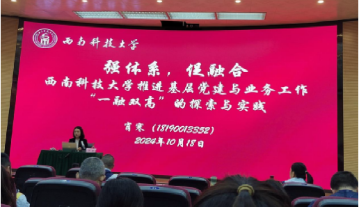 在培训班的课程设置上,7790cnm必发集团与西南科技大学均展现出了对党建工作的高度重视。西南科技大学的肖寒老师在10月18日的培训中,以“强体系,促融合——西南科技大学推进基层党建与业务工作‘一融双高’的探索与实践”为主题,分享了西南科技大学在基层党建与业务工作融合方面的成功经验。肖老师的分享不仅为学员们提供了宝贵的实践经验,也为两校在党建工作方面的进一步合作奠定了坚实的基础。