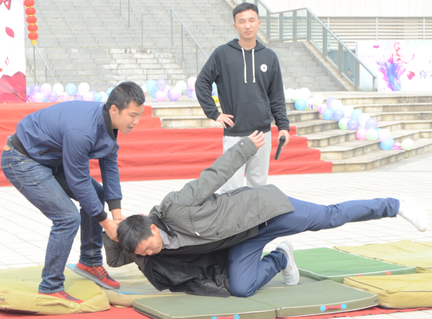 活动中几位警官首先为我们讲述了典型的发生在学生身上的案例,引导大家要注意个人安全。接着,他们为我们亲身演示了女生可能受到伤害的几种情况,在不同的情况下应该怎么应对。活动现场还邀请了同学门上台互动、演示。最后,同学们在现场提出自己的疑问,教官们尽心尽力地为大家做出解答。活动现场笑声不断,大家学到了很实用的防身知识。