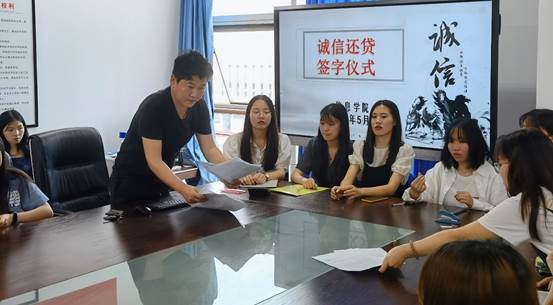 签字仪式现场翟兴旺老师与与会学生进行了座谈。会议上翟兴旺老向同学们解释了国家助学贷款政策,提醒助学贷款的学生们重视个人征信,增强自身信用观念,毕业后按时偿还国家助学贷款,如果在还贷方面如果遇到特殊困难,能够积极主动与银行保持联系,共同营造良好的社会诚信氛围。
