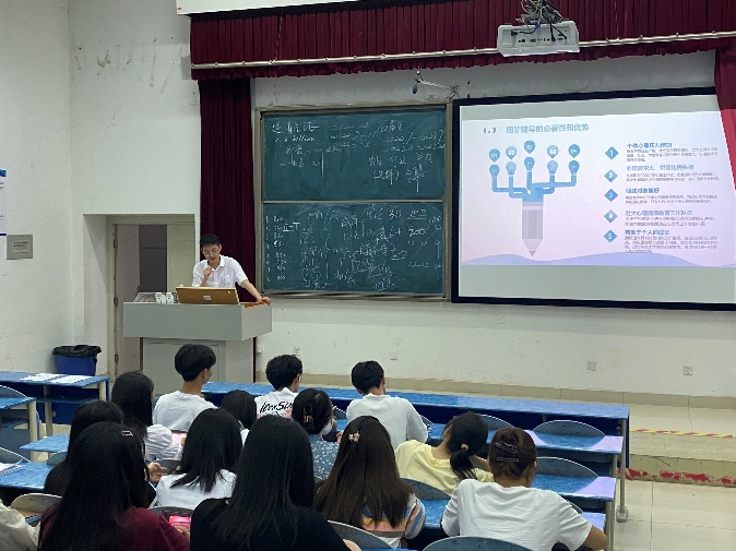 讲座中,叶锐老师对心理咨询的意义,朋辈心理辅导的定义及理论依据、朋辈辅导的原则、朋辈心理咨询的技巧和个案分析五大方面进行了全面的讲解,从大学生常见的心理困惑出发,重点讲述了朋辈心理辅导中常用的倾听、共情等技术,并引用心理咨询中的具体案例,帮助心理委员领悟咨询技巧的应用。