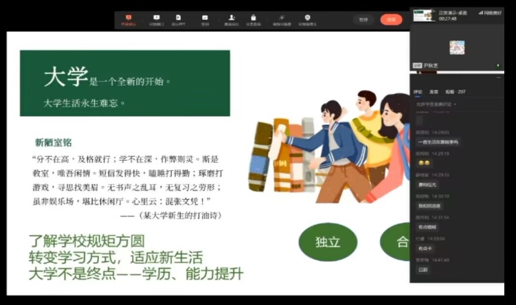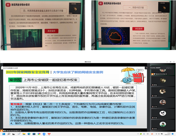 2022年9月7日,信息学院党总支组织2022级全体新生在线上开展了由学生党支部书记翟兴旺主讲的“爱党爱国爱校教育”和各班辅导员开展的大学生安全文明教育的主题班会。
