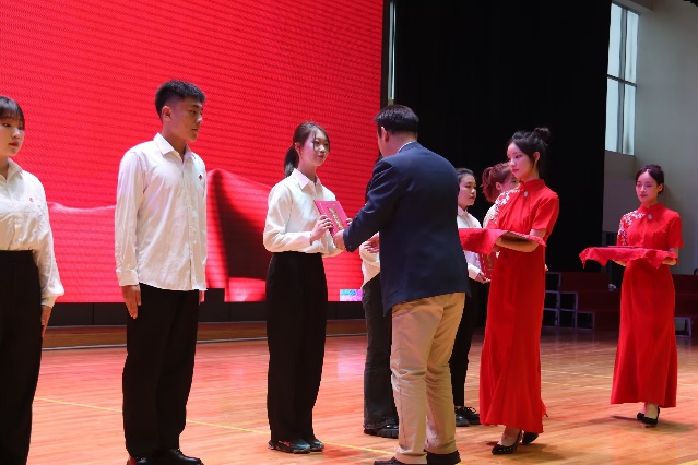 随后,学院团员代表带领新团员宣誓入团誓词,让同学们在这庄重圣神的氛围中接受了一次思想的洗礼和心灵的震撼,更加深切地感受到作为青年一代的沉甸责任和历史使命。