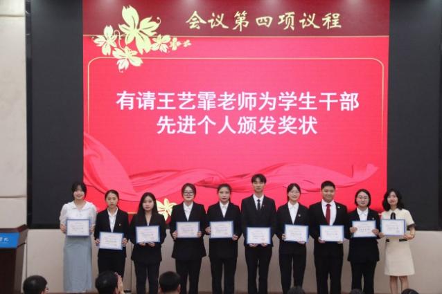 为进一步加强学生干部队伍建设,提高团学干事责任意识、服务意识和大局意识,选拔出一批政治坚定、作风过硬、品学兼优、素质全面的学生干部。2023年6月16日中午,信息学院在至诚楼212教室,隆重召开2023年春季学生工作总结暨表彰大会,信息学院党总支书记、院长李建军、副院长许军、学生党支部书记翟兴旺、团总支书记王艺霏、专职辅导员黄靖、叶锐、尹秋芝、周淋老师出席活动。本次学代会暨团代会由21会信2班章露丹主持。